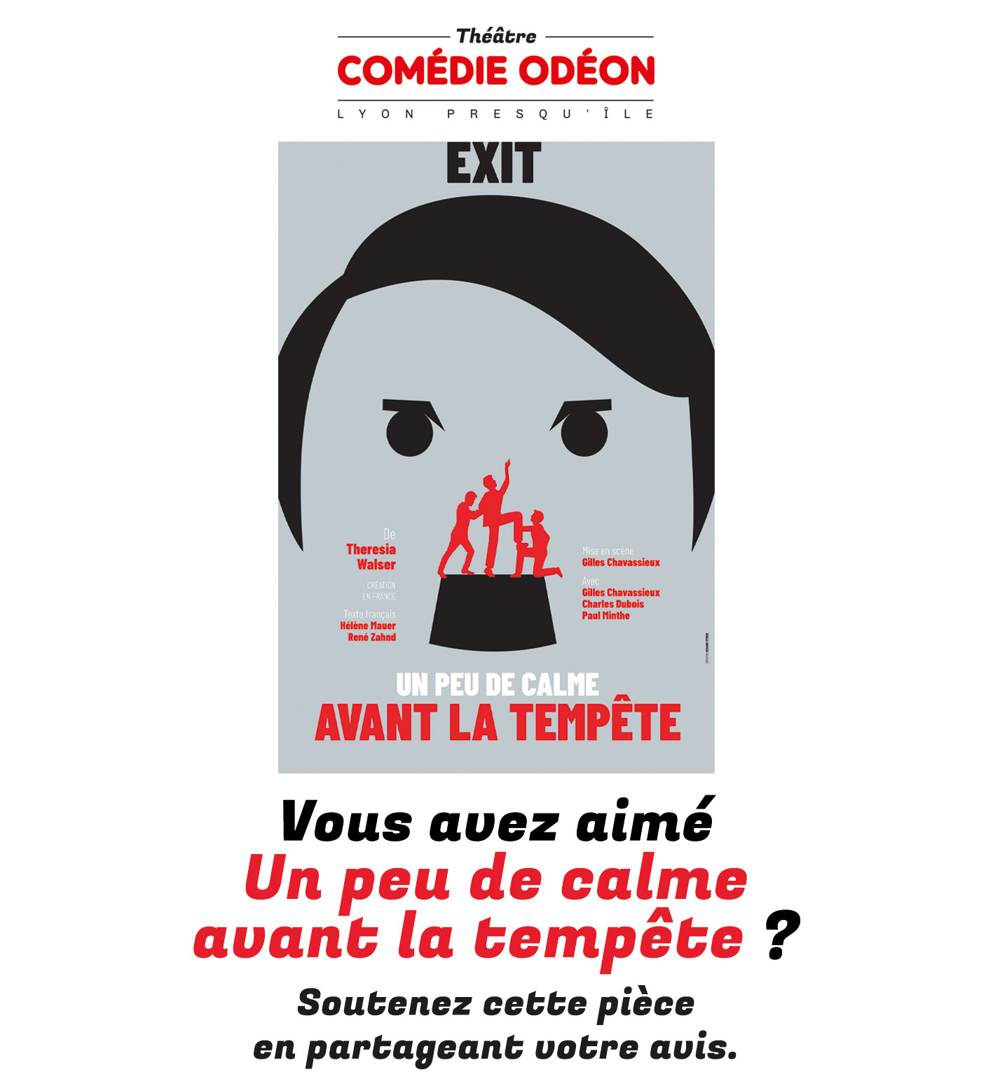 Vous avez vu Un peu de calme avant la tempête présenté au Théâtre Comédie Odéon